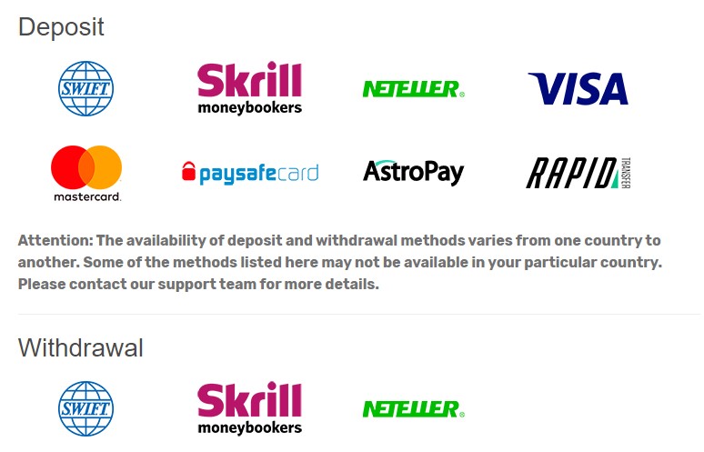 Attention: To avoid any unexpected charges and fees, we recommend that you primarily deposit and withdraw funds into and out of your account in the same currency as the currency of your trading account.